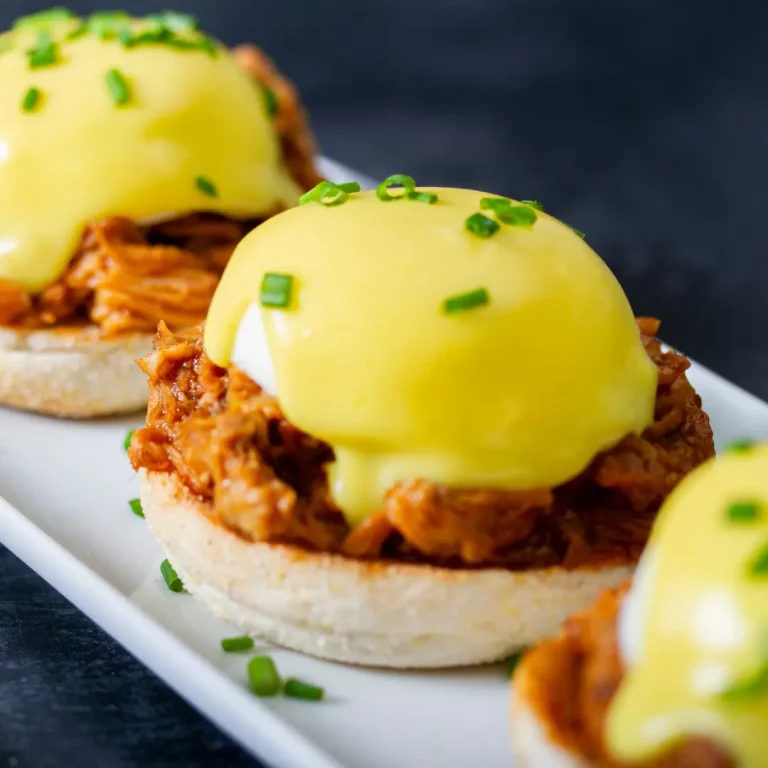 6. Place a poached egg atop each muffin with pulled pork.